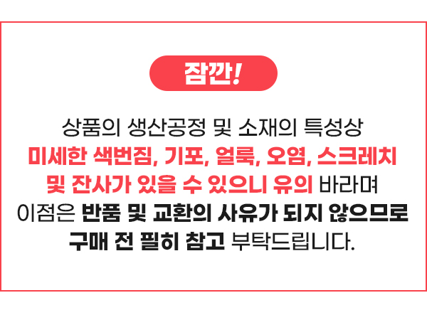 · 상품 불량 사유와 사진을 남겨 주시면 빠른 처리가 가능합니다.
